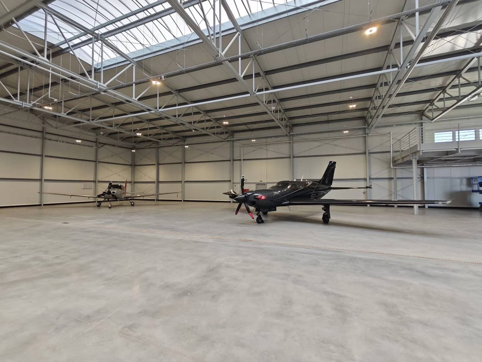 Przedmiotem inwestycji była budowa hangaru o konstrukcji stalowej o powierzchni 1800 m², z zapleczem socjalnym oraz antresolą.. Inwestycja została zrealizowana w systemie generalnego wykonawstwa, obejmując pełen zakres robót – od prac ziemnych, poprzez fundamentowanie, montaż konstrukcji stalowej, podziemny zbiornik ppoż, instalacje wewnętrzne oraz zewnętrzne aż po wykończenie i przekazanie obiektu do użytkowania.