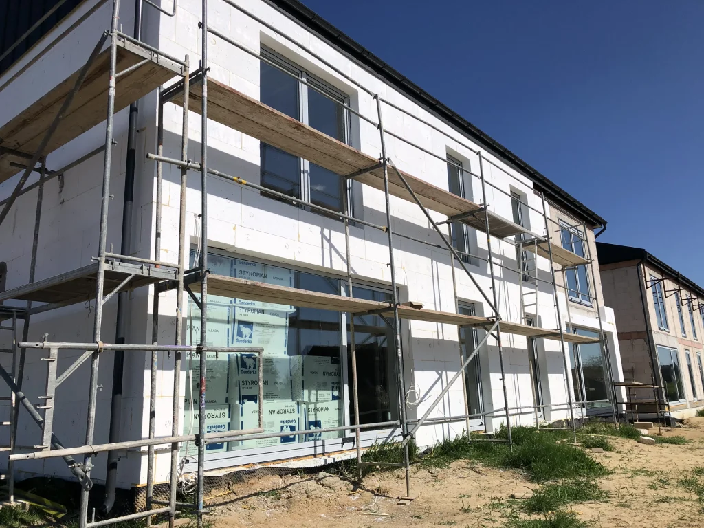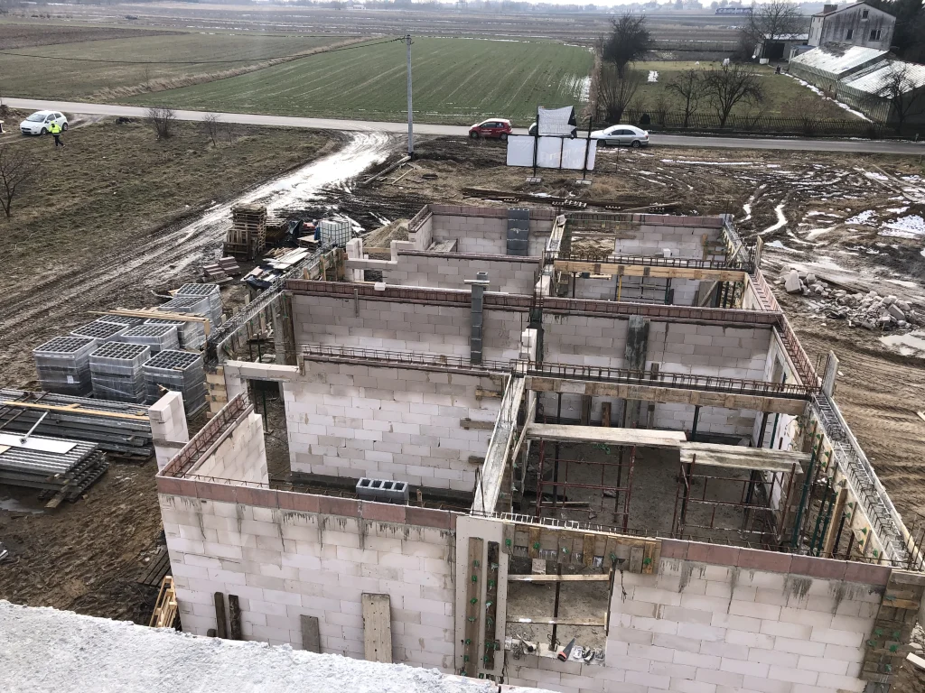 Pełnimy rolę generalnego wykonawcy przy realizacji nowoczesnego osiedla budynków jednorodzinnych w zabudowie bliźniaczej w Jakubowicach Konińskich.